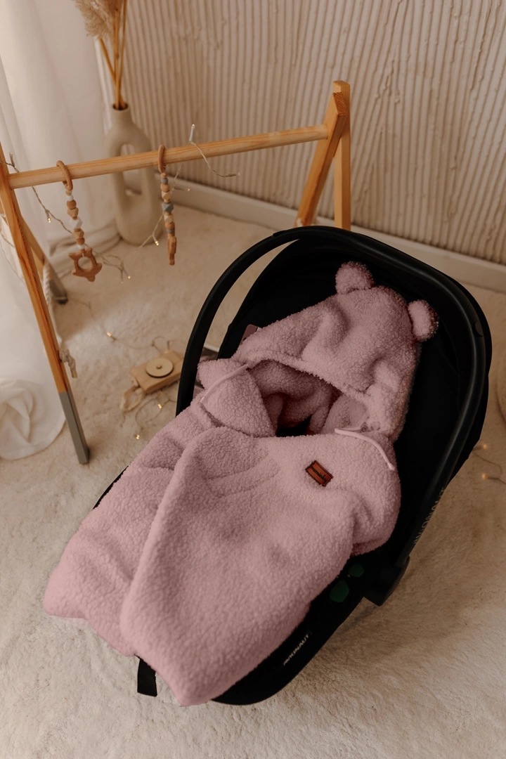 Otulacz Do Fotelika Samochodowego z Kapturkiem | Baranek Brudny Róż