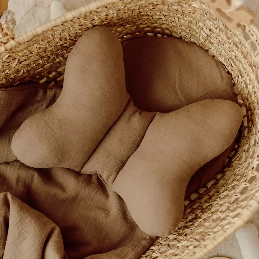 Poduszka Antywstrząsowa Motylek Muślin A'la Len | Ciemny Beż